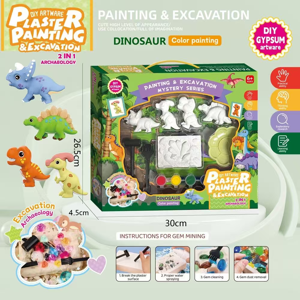 2-in-1 • DIY Plaster Painting & Excavation Kit Kids Paint & Gem Dig Activity Set • Ocean/Animal/Dinosaur/Princess