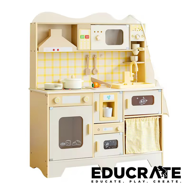 educratePH Sunny Kitchen Wooden Playset β Unisex Pretend Play Cooking Toy for Kids | Montessori Role Play Kitchen
