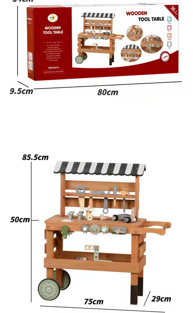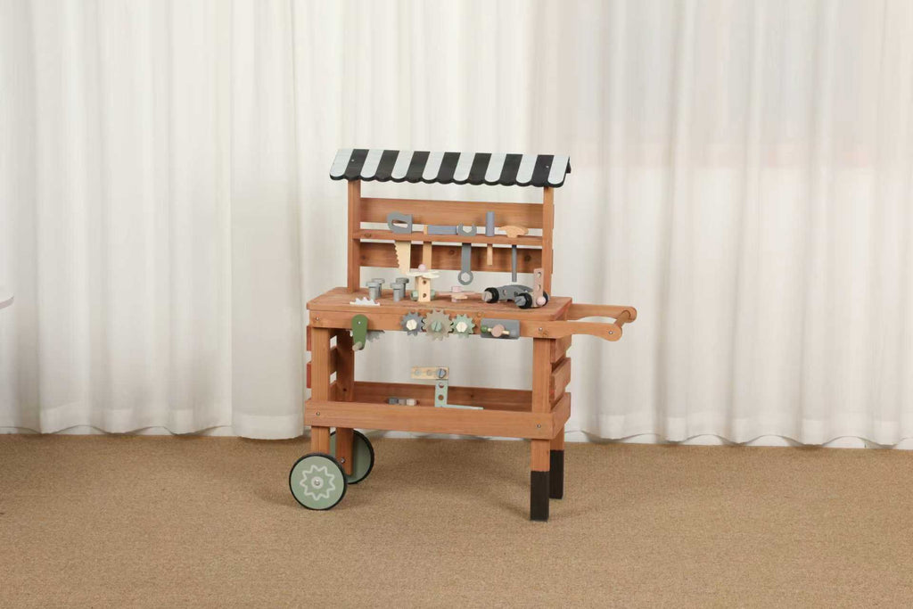 Let your little builder’s imagination come alive with our Wooden Handy Builder Cart — a rolling workbench complete with tools, gears, and open-ended play parts! Made from durable wood with a charming striped canopy, this set encourages STEM learning, fine motor skills, and hours of pretend play fun.